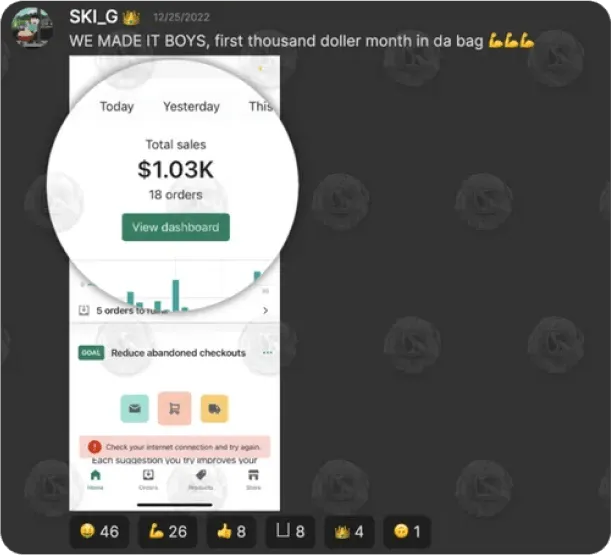 Within 5 weeks he generated €22,000 in revenue (€4,500 profit) through Ecommerce.